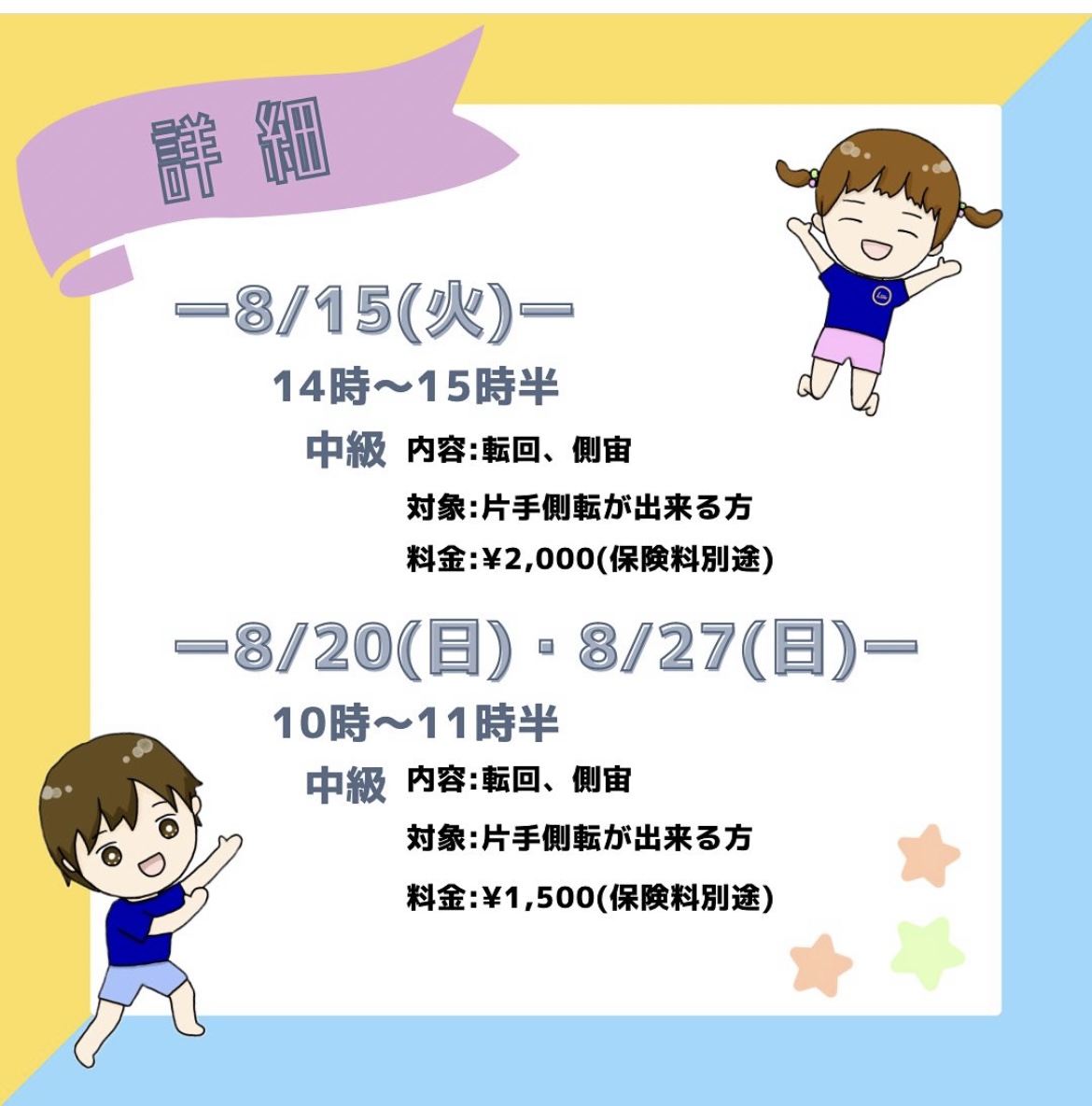 8月15日(火)、8月20日(日)、8月27(日)で開催します🎌💪
